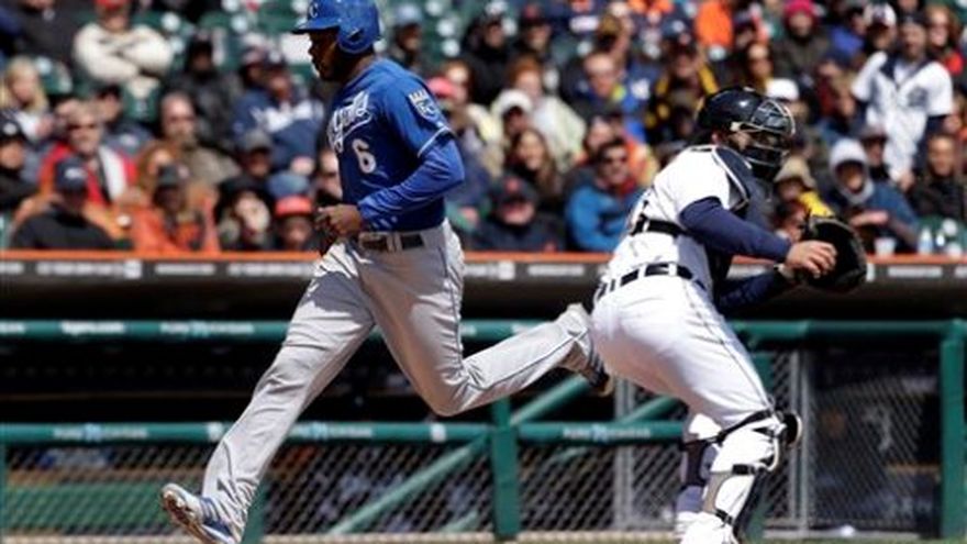 Alex Gordon conectó un jonrón con las bases llenas para coronar una décima entrada de cinco carreras, y los Reales de Kansas City remontaron ante el bullpen de Detroit para vencer el jueves por 8-3 a los Tigres. George Kottaras le dio ventaja de 4-3 a los Reales con un boleto con las bases llenas ante Phil Coke (0-3). Darin Downs subió al montículo y permitió el vuelacerca de Gordon. El as de los Tigres, Justin Verlander, salió del partido con una lesión en el pulgar de su mano de lanzar. El equipo informó que se trata de un tajo en la piel y que su condición será evaluada a diario. El derecho permitió dos carreras, una limpia, en siete entradas, y se fue con ventaja de 3-2. El relevista venezolano Bruce Rondón permitió la carrera del empate en la octava, en su debut en las mayores. Tim Collins (1-0) consiguió el triunfo. Por los Reales, los venezolanos Alcides Escobar de 5-2, con una anotada, y Salvador Pérez de 3-1, con una remolcada. Por los Tigres, los venezolano Miguel Cabrera de 4-1, con una remolcada; Víctor Martínez de 4-0; y Omar Infante de 3-1, con una anotada. El dominicano Jhonny Peralta de 3-0, con una remolcada.