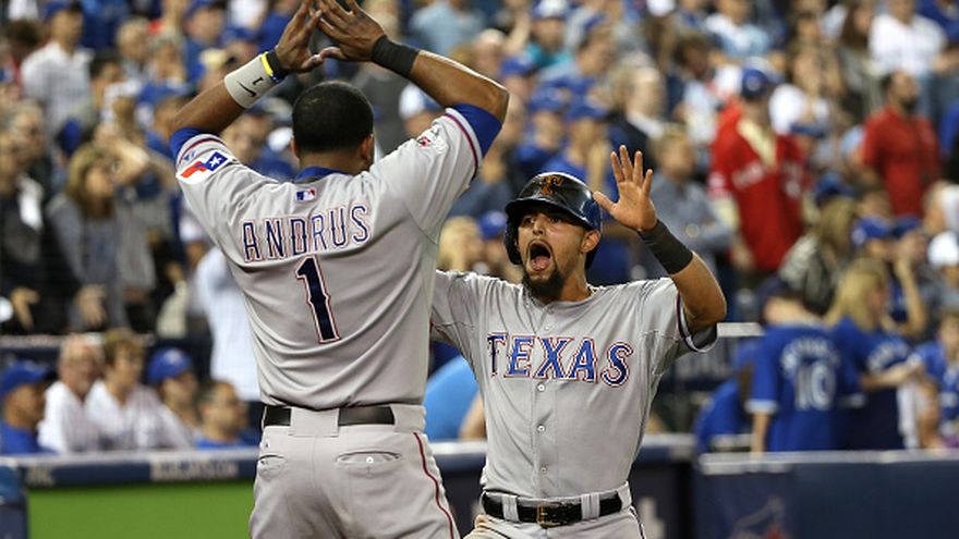 Un sencillo del dominicano Hanser Alberto empujó la carrera de la ventaja en el 14º inning, y los Rangers de Texas ganaron este viernes 6x4 un maratón de cinco horas de juego contra Azulejos de Toronto, para colocarse a una victoria de obtener la serie divisional de playoffs de la Liga Americana.