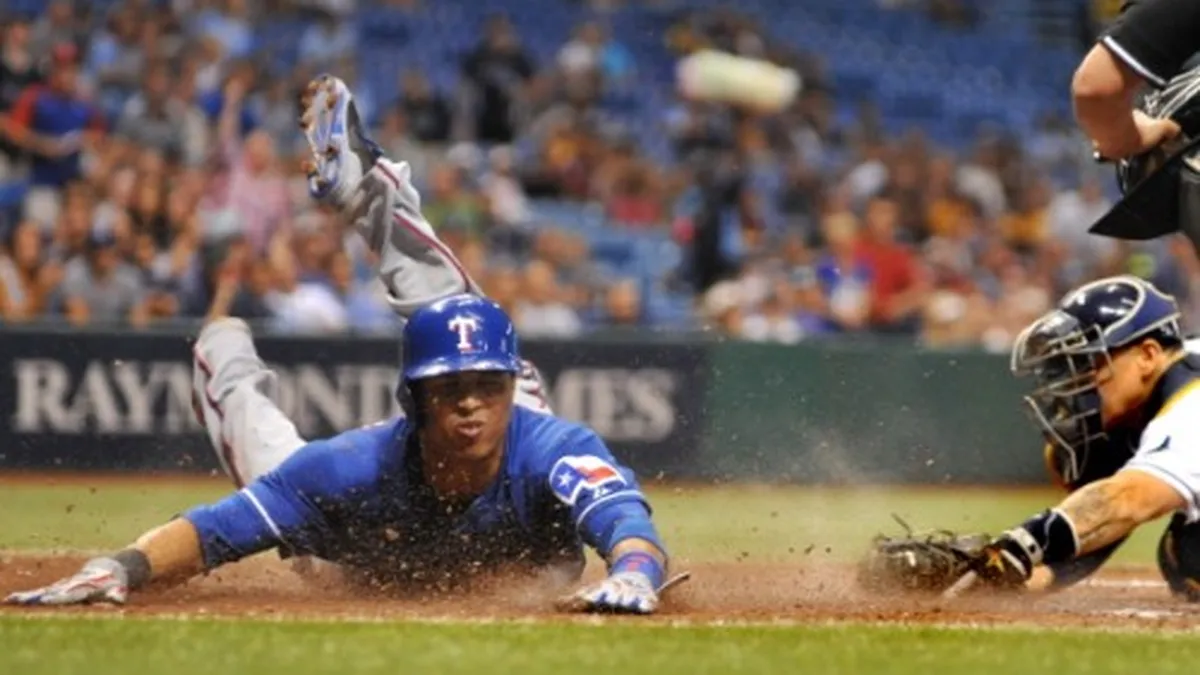Hizo falta tan sólo un lanzamiento en el juego del martes por la noche para que los Rangers de Texas tomaran la ventaja en un encuentro por primera vez en más de una semana. Pero con ello alcanzaron a sus rivales en la puja por un boleto de comodín para la postemporada. Ian Kinsler encontró una recta de Jeremy Hellickson para un jonrón, y los Rangers doblegaron 7-1 a los Rays de Tampa Bay. El venezolano Elvis Andrus añadió un vuelacerca para que Texas saliera de una cadena de siete derrotas en fila. "Evidentemente, hemos peleado mucho para venir de atrás en esta última semana o algo así", dijo Kinsler. "Fuimos capaces de salir de esto, con un hit y una carrera, para dar a (Alexi) Ogando un respiro". Kinsler desapareció el primer ofrecimiento de Jeremy Hellickson (11-9) para su duodécimo jonrón. Así, de un plumazo, se puso fin a una racha de siete juegos sin jonrones para Texas, la más prolongada en sus 23 años de existencia. La ventaja 1-0 también fue la primera vez que los Rangers lideraron en un juego desde su victoria previa, el 8 de septiembre. Andrus estaba en el círculo de espera cuando llegó el bambinazo de Kinsler. "Creo que el jonrón de Ian hizo que todo el equipo se relajara", dijo. "Hacía mucho que no anotábamos la primera carrera del juego". En el tercer acto, Kinsler añadió un sencillo productor de dos carreras dentro de un racimo de cuatro de los Rangers en el tercero. El venezolano Andrus le siguió con su tercer jonrón del año para poner la pizarra 5-0. Kinsler y Andrus remolcaron tres carreras cada uno. El dominicano Ogando (7-4) ganó en su primera apertura desde el 13 de agosto, al permitir dos hits en cinco innings. El manager Ron Washington informó que el serpentinero se ganó la oportunidad de volver a abrir el encuentro del domingo, en Kansas City. "Ogando cumplió con su deber y creo que se merece todo el mérito", dijo el piloto. "No esperábamos cinco innings. Yo creía que él podría trabajar algunas entradas, pero nos dio cinco innings de calidad". La victoria permitió a los Rangers alcanzar a los Rays en la cima de la puja por el comodín de la Liga Americana. Texas controló el primer boleto de wild card o la punta de la División Oeste de la Liga Americana durante buena parte de los últimos tres meses. Pero consiguió apenas su cuarto triunfo en 17 partidos. Los Rangers tomaron una ventaja de tres juegos y medio sobre Yanquis, también en la lucha por el comodín. Nueva York sucumbió 2-0 ante los Azulejos en Toronto. En cambio, los Indios de Cleveland se acercaron a medio juego de los Rangers y de los Rays, gracias a una victoria de 5-3 sobre los Reales de Kansas City, que están tres juegos y medio atrás. El venezolano Asdrúbal Cabrera remolcó la carrera de la ventaja. En otros encuentros de la Liga Americana, los Atléticos de Oakland superaron 2-1 a los Angelinos de Los Ángeles, para reducir a seis su "número mágico" para asegurarse el cetro de la División Oeste, y los Tigres de Detroit doblegaron 6-2 a los Marineros de Seattle, con un cuadrangular del venezolano Miguel Cabrera (44), para colocar también en seis la cifra que requieren a fin de coronarse en la Central. Asimismo, los Medias Blancas de Chicago superaron 4-3 a los Mellizos de Minnesota, con tres hits y dos producidas por el cubano Dayán Viciedo, y los Orioles de Baltimore superaron 3-2 a los Medias Rojas de Boston. En la Liga Nacional, los Padres de San Diego doblegaron 5-2 a los Piratas de Pittsburgh, para afectarlos en su búsqueda del título de la División Central. Los Cardenales de San Luis se apoderaron de la punta más tarde, al aplastar 11-4 a los Rockies de Colorado. Los Dodgers de Los Ángeles derrotaron 9-3 a los Diamondbacks de Arizona, gracias a jonrones del dominicano Juan Uribe y del mexicano Adrián González. Si repiten la dosis este miércoles, se coronarán en la División Oeste. En una doble cartelera, los Nacionales de Washington superaron 6-5 a los Bravos de Atlanta en el primer juego, que debió suspenderse el lunes a raíz del tiroteo mortífero en el Astillero Naval de la capital estadounidense. En el segundo, Washington completó la barrida al imponerse por 4-0. Washington no pudo acercarse más a Cincinnati en la lucha por un boleto de comodín. Los Rojos se ubicaron cuatro juegos y medio arriba, luego de aplastar 10-0 a los Astros de Houston, que encajaron su derrota 100 en la campaña. Además, los Gigantes de San Francisco vencieron 8-5 a los Mets de Nueva York, con un jonrón y un triple del puertorriqueño Ángel Pagán, y los Filis de Filadelfia vencieron 6-4 a los Marlins de Miami.