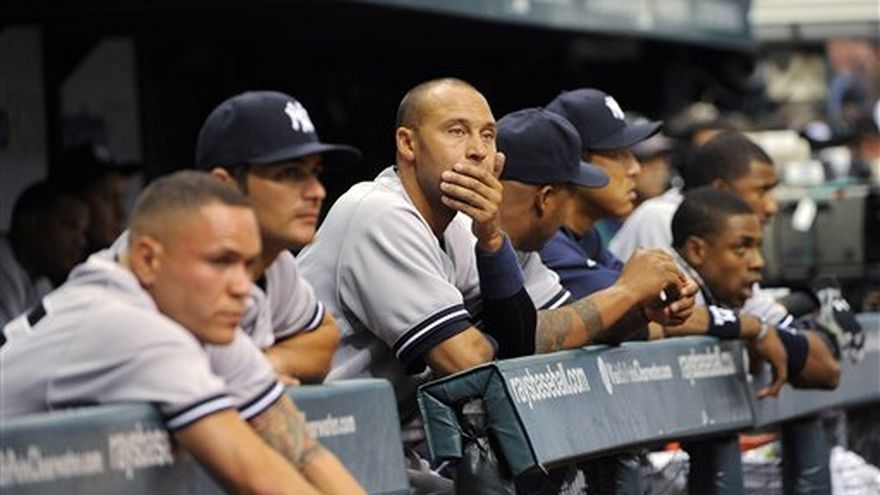 Jeremy Hellickson se quedó a un out de lanzar un juego completo en su cumpleaños y los Rays de Tampa Bay blanquearon 3-0 el domingo a los Yanquis de Nueva York para barrer su primera serie de la temporada y empatar el mejor comienzo en la historia del club. Carlos Peña y Jeff Keppinger pegaron jonronres para Tampa Bay, que también empezó con tres victorias consecutivas en 2002. Los Yanquis tienen foja de 0-3 por primera vez desde 1998, años en el que terminaron ganando 114 partidos y la Serie Mundial. Al celebrar sus 25 años, Hellickson (1-0) limitó a los Yanquis a sendos dobles de Nick Swisher, Mark Teixeira y Alex Rodríguez. El también Novato del Año de la Liga Americana en 2011 expidió cuatro pasaportes, ponchó a cuatro y le faltaba un out para el tercer partido completo de su carrera y su segunda blanqueada cuando fue reemplazado por el dominicano Fernando Rodney. El dominicano Peña le botó la pelota al abridor Phil Hughes (0-1) en la tercera. Por los Rays, el dominicano Carlos Peña de 4-2 con una anotada y una empujada. El puertorriqueño José Molina de 3-0. Por los Yanquis, el dominicano Robinson Canó de 4-0.