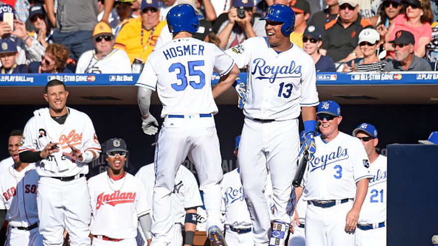 Jonrones de los 'monarcas' Eric Hosmer y Salvador Pérez, ambos de los Reales de Kansas City, le dieron este martes un triunfo de 4x2 a la Liga Americana sobre la Nacional en el Juego de Estrellas 87 en el béisbol de las Grandes Ligas.