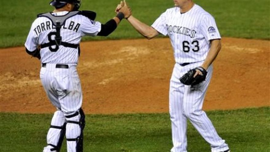 El lanzador mexicano Jorge De La Rosa lanzó seis entradas sin permitir imparable bajo una lluvia constante y el venezolano Carlos Gonzáles bateó su séptimo cuadrangular de la temporada para conducir el martes a los Rockies de Colorado a una victoria de 2-0 sobre los Yanquis de Nueva York. A pesar de una apertura estelar de Hiroki Kuroda, los Yanquis perdieron su quinto juego consecutivo en el Coors Field, desde una serie interligas en 2002. Fueron barridos en una serie de tres juegos en 2007 en su última visita a parque de béisbol en el centro de Denver. González rompió un empate sin carreras en el sexto período con dos outs cuando conectó la bola a Kuroda (4-2) en cuenta de 3-2 al bullpen en el jardín derecho con un corredor a bordo para dar a Colorado la ventaja de 2-0. Su batazo de vuelta entera siguió a un sencillo con dos outs de Josh Rutledge. De la Rosa (3-3) permitió tres hits, dio una base por bolas y ponchó a un par de bateadores para poner su marca de por vida contra los Yanquis en 3-0 con promedio de carreras limpias admitidas de 0.98. Kuroda (4-2) recibió dos carreras y siete imparables en siete entradas; otorgó un pasaporte y registró tres ponches. Por los Yanquis, el dominicano Robinson Canó de 4-0. Por los Rockies, los venezolanos Carlos González de 4-1 con una carrera anotada y dos producidas; Yorvit Torrealba de 3-0; y Jonathan Herrera de 3-2. El mexicano Jorge de la Rosa de 1-0.