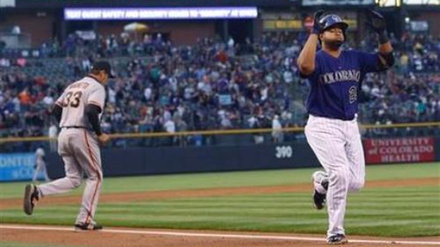 DENVER (AP) -- Charlie Blackmon bateó dos de los cinco vuelacercas de Colorado y el mexicano Jorge de la Rosa lanzó con eficiencia durante cinco entradas, para que los Rockies doblegaran el lunes 8-2 a los Gigantes de San Francisco. Nolan Arenado, el dominicano Wilín Rosario y Corey Dickerson conectaron también de jonrón por los Rockies, que han ganado cuatro de sus últimos cinco encuentros. Es la primera vez que Blackmon conecta más de un cuadrangular en un partido. De la Rosa (1-3) reencontró su ritmo, toleró cinco hits y una carrera, y se apuntó su primera victoria de la temporada. El zurdo, especialista en la recta, empató la mejor marca de su vida, con 16 triunfos, la temporada anterior. Ryan Vogelsong (0-1) nunca encontró el control y abandonó la lomita después de un inning y un tercio, su apertura más breve de los Gigantes. Aceptó cinco carreras y seis imparables, incluidos tres cuadrangulares. Blackmon disparó jonrones en solitario en el segundo y el octavo capítulo. Su promedio en esta temporada es de .411. Por los Gigantes, el puertorriqueño Ángel Pagán de 3-1. Los venezolanos Héctor Sánchez de 1-0, Pablo Sandoval de 4-0, Yusmeiro Petit de 1-0, Gregor Blanco de 1-0. Por los Rockies, el venezolano Carlos González de 4-0. El dominicano Rosario de 4-2 con dos anotadas y tres empujadas. El mexicano De la Rosa de 2-0.