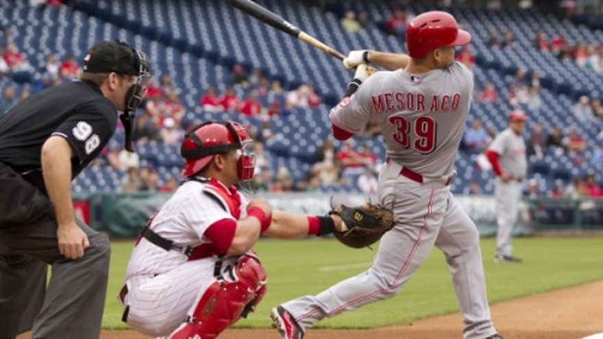 FILADELFIA (AP) -- El dominicano Alfredo Simón toleró cinco hits en siete episodios y dos tercios, mientras que Devin Mesoraco bateó un jonrón de tres carreras para que los Rojos de Cincinnati vencieran el viernes 3-0 a los Filis de Filadelfia. Simón (5-2) recetó ocho ponches, su mayor cifra de la temporada, en una faena que incluyó un boleto y un golpe. Manny Parra sacó un out del octavo capítulo y el cubano Aroldis Chapman ponchó al emergente venezolano César Hernández con una recta a 102 millas por hora, cuando había corredores en segunda y tercera, para su segundo salvamento en dos oportunidades. Los Filis no han anotado una carrera en los últimos 20 innings, y fueron blanqueados por sexta ocasión en la campaña. Han perdido cuatro encuentros consecutivos y ocho de 10 para caer a cinco juegos de la marca de .500 (17-22), su peor foja de la campaña. Kyle Kendrick (0-4) perdió su novena decisión consecutiva, una racha que se remonta al 11 de agosto. Aceptó tres carreras y cuatro hits en siete innings. Por los Rojos, el cubano Brayan Peña de 4-0. El dominicano Simón de 3-0. Por los Filis, el panameño Carlos Ruiz de 3-1. El venezolano Hernández de 1-0.