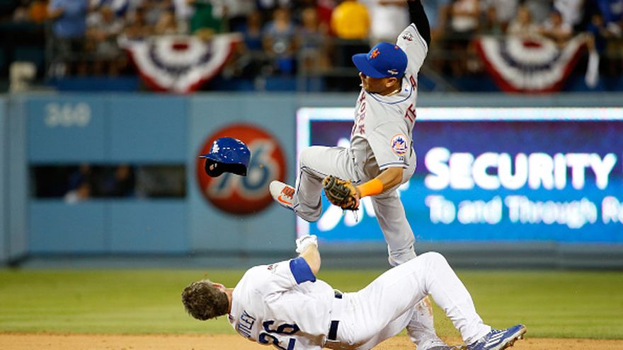 Hubo confusión y una lesión en el cierre del séptimo inning del Juego 2 de la Serie Divisional de la Liga Nacional entre los Mets y los Dodgers, durante una jugada en la que salió lesionado el torpedero de Nueva York, Rubén Tejada. Además, una apreciación del árbitro fue cambiada.