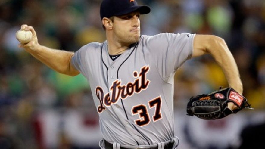 Max Scherzer dominó a los bates de los Atléticos de Oakland con su dominante bola rápida, luego los confundió con sus lanzamientos de menor velocidad. Scherzer ponchó a 11 a lo largo de siete entradas, el venezolano Miguel Cabrera ayudó a Detroit a tomar una temprana ventaja antes de abandonar el partido en la octava, y los Tigres resistieron para vencer 3l viernes 3-2 a los Atléticos en el primer partido de su serie divisional por la Liga Americana. El único que pudo hacerle daño a Scherzer fue el cubano Yoenis Céspedes, insuficiente ante el probable ganador del Premio Cy Young. Cabrera y Alex Ávila pegaron sencillos productores en el primer inning contra el abridor dominicano Bartolo Colón, cuya racha sin victorias ante los Tigres se extiende a 10 años y medio. El derecho de 40 años permitió 10 hits y tres carreras en seis episodios. Ponchó a cuatro. Scherzer, por su parte, retiró a 16 de los primeros 18 bateadores que enfrentó y lució casi intocable antes de que Céspedes conectara el vuelacerca de dos carreras en la séptima entrada, el primero en playoffs de la carrera del cubano. Los 11 ponches representan la mayor cantidad que propina Scherzer en siete aperturas de postemporada. Céspedes se ponchó en la novena ante el taponero dominicano Joaquín Benoit, que retiró los últimos cuatro bates de Oakland para apuntarse el salvamento. Por los Tigres, los venezolanos Cabrera de 4-1 con carrera impulsada, Víctor Martínez de 4-2 con anotada, Omar Infante de 4-2. El dominicano Jhonny Peralta de 1-0. El cubano José Iglesias de 4-0. Por los Atléticos, el cubano Céspedes de 4-2 con anotada y dos remolcadas. El venezolano Alberto Callaspo de 1-0.