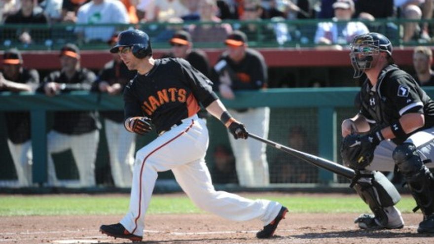 El venezolano Marco Scutaro salió con una jugada extraña llevándose una base extra luego de un pasaporte el martes, y los Gigantes de San Francisco vencieron por 4-2 a los Padres de San Diego Padres 4-2. Scutaro, el Jugador Más Valioso en la serie de campeonato de la Liga Nacional del año pasado, recibió pasaporte en la tercera entrada. Se arrancó a primera, y siguió para robarse la segunda base. Hunter Pence pegó un doblete de dos carreras para romper el empate en la quinta. El hit fue contra el abridor de San Diego Andrew Cashner. Brandon Belt, que se perdió los dos partidos pasados por un problema en el cuello, regresó al campo y pegó tres imparables para los Gigantes, incrementando su promedio a .453.