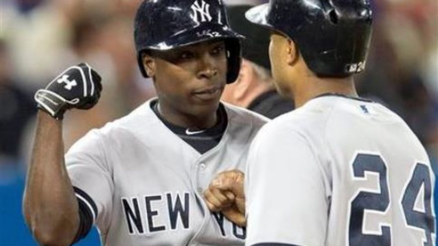 Alfonso Soriano sintió que tenía algo que demostrar cuando los Yanquis lo cedieron en un canje a Texas, antes de la campaña de 2004. Diez años después, ha regresado y lo está demostrando. El dominicano conectó dos vuelacercas para llegar a 400 de por vida, y Nueva York venció el martes 7-1 a los Azulejos de Toronto, pese a perder a otro quisqueyano, Robinson Canó, en el primer inning. Andy Pettitte resolvió siete entradas sin admitir carrera, mientras que Alex Rodríguez y Mark Reynolds se sumaron al apoyo ofensivo con sendos cuadrangulares, para que los Yanquis ganaran por 13ra ocasión en 15 enfrentamientos con Toronto en lo que va de la campaña. Soriano conectó sus jonrones 399 y 400 de por vida, así como el 27mo y el 28vo en la campaña. Lleva 11 palos de vuelta entera desde el 26 de julio, cuando regresó a Nueva York, procedente de los Cachorros de Chicago. "Fue grandioso para mí", dijo Soriano. "Cuando me marché de aquí no estaba triste, porque eso es parte de este deporte, pero pensé entonces que tenía algo que probar ante mí mismo, ante mis compañeros y ante los fanáticos". Canó fue golpeado en la mano izquierda por un lanzamiento del zurdo J.A. Happ en la primera entrada. El dominicano permaneció en el encuentro para correr por los senderos y anotó una carrera, pero fue sustituido en la parte baja del episodio por su compatriota Eduardo Núñez. "Ahora la muñeca está inflamada, y lo último que quieres es que esto se agrave", dijo Canó. Las radiografías descartaron una fractura, y la condición del toletero se analizará diariamente. Para colmo, Núñez pareció lesionarse la pierna derecha cuando cubría la intermedia, en el octavo capítulo. El kinesiólogo Steve Donohue lo examinó, y el dominicano permaneció en el encuentro, pero fue reemplazado por el corredor emergente Lyle Overbay, tres bateadores después de conectar un sencillo en la apertura del noveno. Rodríguez pegó un garrotazo en solitario por el jardín central frente a Esmil Rogers en la séptima entrada. Fue su cuadrangular número 651 y el segundo en un par de encuentros. Rodríguez, quien lleva cuatro bambinazos en esta temporada, está a nueve de igualar a Willie Mays en el cuarto lugar de la lista histórica de los mejores jonroneros. De alcanzar ese hito, se haría de una bonificación de seis millones de dólares. Pettitte (10-9) mejoró a una foja de 7-1 en sus últimas ocho aperturas contra Toronto. Permitió cinco hits, dio dos pasaportes y ponchó a tres contrincantes. El lanzador destacó lo importante que ha sido para los Yanquis traer de vuelta a Soriano. "Fue una gran decisión para nosotros", dijo. "Nos da energía tener a un jugador especial como este, que puede batear con poder, sacar outs importante y correr por las bases. Es emocionante. Parece un jovencito". En otros encuentros de la Liga Americana, los Medias Rojas de Boston aplastaron 13-2 a los Orioles de Baltimore, con victoria del venezolano Félix Doubront (10-6); los Atléticos de Oakland vencieron 6-3 a los Tigres de Detroit, en un juego abreviado a cinco entradas por la lluvia; los Angelinos de Los Ángeles superaron 6-5 a los Rays de Tampa Bay, con cuatro producidas por el dominicano Erick Aybar. Además, los Reales de Kansas City doblegaron 6-1 a los Mellizos de Minnesota; los Medias Blancas de Chicago superaron 4-3 a los Astros de Houston, y los Rangers de Texas vencieron 4-3 a los Marineros de Seattle en 10 innings. Soriano no fue el único dominicano que alcanzó un hito en la jornada. Aramis Ramírez bateó tres imparables, incluido el cuadrangular número 350 de su carrera, para producir cuatro anotaciones en el triunfo de los Cerveceros de Milwaukee por 7-6 sobre los Piratas de Pittsburgh. Ramírez dijo que no recuerda con exactitud cuándo conectó su primer jonrón. "Era un chico, tal vez tenía 19 años", dijo. El veterano antesalista dominicano, con 16 años en Grandes Ligas, ayudó a los Cerveceros a construir una ventaja de 5-0 en la quinta entrada, pero los Piratas empataron la pizarra en la sexta. Milwaukee consiguió la victoria cuando el novato Caleb Gindl bateó como emergente un elevado de sacrificio que rompió el empate en el octavo episodio. Curiosamente, el jonrón 350 de Ramírez llegó cerca del sitio donde bateó su primer cuadrangular en las mayores, también contra su equipo actual. Jugando por los Piratas, el 12 de junio de 1998, Ramírez desapareció un lanzamiento de Scott Karl, de Milwaukee, en el Three Rivers Stadium. "Si me hubieran dicho, cuando tenía 19 años, que batearía al menos 350 jonrones en mi carrera, me hubiera parecido algo muy bueno", dijo Ramírez. "Ahora estoy viejo, pero esto demuestra que si juegas el tiempo suficiente puedes alcanzar esas cifras" Con el juego empatado a 6-6, el cubano Yuniesky Betancourt conectó un doblete con un out contra Bryan Morris (5-7) y avanzó a la tercera base con sencillo de Scooter Gennett. Gindl bateó entonces su elevado al jardín derecho con el que anotó Betancourt y dio a los Cerveceros su tercera victoria en los últimos cuatro juegos. Pittsburgh, que inició el día medio juego atrás de los Cardenales de San Luis, líderes de la División Central de la Liga Nacional, perdió su tercer encuentro seguido. En otros juegos de la Liga Nacional, los Gigantes de San Francisco vencieron 5-3 a los Rockies de Colorado, con un vuelacerca del venezolano Pablo Sandoval (10). Asimismo, los Cardenales de San Luis derrotaron 6-1 a los Rojos de Cincinnati; los Mets de Nueva York blanquearon 5-0 a los Filis de Filadelfia; los Nacionales de Washington superaron 2-1 a los Marlins de Miami; los Diamondbacks de Arizona 10-9 a los Padres de San Diego en 10 entradas; y los Cachorros de Chicago derrotaron 3-2 a los Dodgers de Los Ángeles. En los interligas de la jornada, los Bravos de Atlanta blanquearon 2-0 a los Indios de Cleveland.