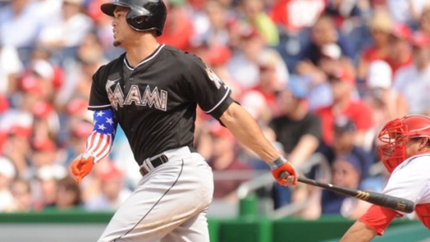 WASHINGTON (AP) -- Giancarlo Stanton conectó su jonrón 15 de la temporada para afirmarse como líder de la Liga Nacional, y también pegó doble y sencillo en su más reciente exhibición ofensiva en el Nationals Park, llevando a los Marlins de Miami a un triunfo el lunes de 3-2 sobre los Nacionales de Washington. Stanton conectó doblete y anotó en la primera entrada y luego pegó un largo jonrón de dos carreras en el tercer inning. Stanton batea para .333 (de 129-43) con 14 cuadrangulares y 27 carreras remolcadas en Washington desde que su carrera comenzó en 2010. Ha disparado de jonrón en el Nationals Park más veces que cualquier otro jugador visitante durante ese lapso. Los Marlins mejoraron su marca a 7-17 fuera de casa. Tienen registro de 20-8 como locales. Nathan Eovaldi (4-2) lanzó seis entradas y un tercio, admitiendo dos carreras y tres imparables. Steve Cishek trabajó el noveno capítulo para su undécimo rescate. Adam LaRoche dio cuadrangular por los Nacionales, que habían ganado 12 de sus 13 encuentros previos ante Miami en casa. Tanner Roark (3-3) trabajó durante siete entradas en la derrota. Por los Marlins, el dominicano Marcell Ozuna de 4-1. El cubano Adeiny Hechavarría de 3-0. El venezolano Wilson Ramos de 4-1 por los Nacionales.