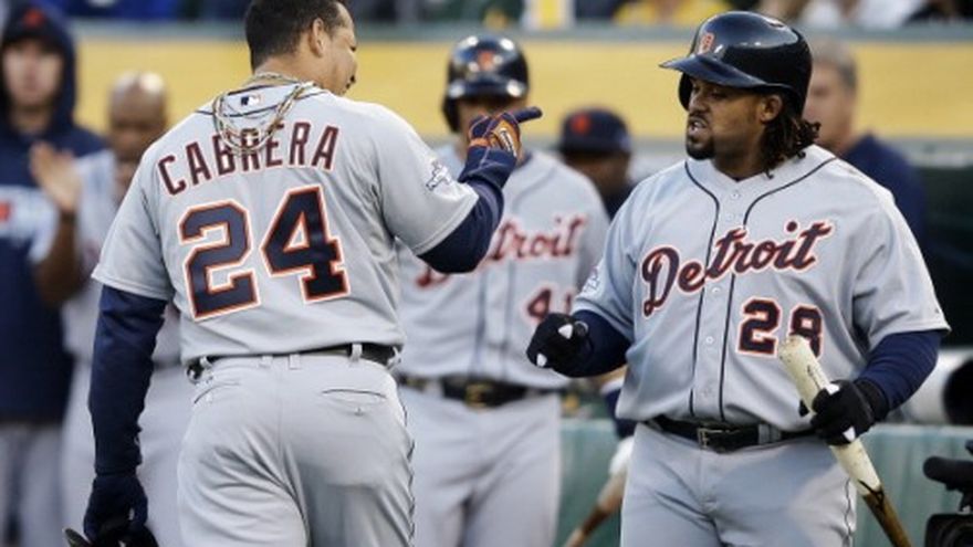 Justin Verlander lanzó otra joya en el quinto juego en Oakland y no le batearon hit hasta la séptima entrada, el venezolano Miguel Cabrera pegó un jonrón y los Tigres de Detroit derrotaron el jueves 3-0 a los Atléticos para avanzar a la serie de campeonato de la Liga Americana. El dominicano Joaquin Benoit retiró a Seth Smith con un elevado con dos out en el noveno episodio para cerrar el juego definitivo de su serie divisional. Los Tigres se convirtieron en el primer equipo que llega a la serie de campeonato de la Liga Americana tres años consecutivos desde que lo hicieron los Yanquis de Nueva York entre 1998 y 2001. El primer partido es el sábado en Boston. Los Tigres tienen foja de 4-3 contra los Medias Rojas esta temporada. Verlander concedió un sencillo con dos out al cubano Yoenis Céspedes en la séptima entrada para acabar con su chance del tercer juego sin hit en la historia de las postemporadas. En cualquier caso, el hit no lo alteró. Verlander ponchó a 10 en ocho innings. Por los Tigres, los venezolanos Cabrera de 4-1 con una anotada y dos impulsadas; Víctor Martínez de 4-3 con una anotada; y Omar Infante de 4-0. El dominicano Jhony Peralta de 4-2. Por los Atléticos, el cubano Céspedes de 3-1. El venezolano Alberto José Callaspo de 3-0.