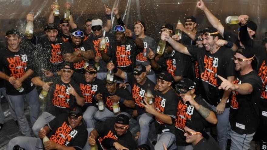 Max Scherzer obtuvo su vigésimo primera victoria y los Tigres de Detroit conquistaron el título de la División Central de la Liga Americana por tercera temporada consecutiva al derrotar el miércoles por 1-0 a los Mellizos de Minnesota. Torii Hunter conectó un sencillo productor, después de un triple de Austin Jackson que abrió la primera entrada, y eso fue todo lo que Scherzer (21-3), los jugadores de los Tigres y el piloto Jim Leyland, necesitaron para comenzar la fiesta. "No creo que la gente tenga de verdad noción de lo difícil que es ganar", dijo Leyland. Scherzer concedió dos sencillos en siete entradas. El dominicano José Veras y Drew Smyly compartieron el trabajo del octavo episodio y el dominicano Joaquín Benoit trabajó el noveno para su 24to salvamento en 25 oportunidades. "Para nosotros, poder hacerlo tres años seguidos ahora es verdaderamente especial, y testimonio del talento de nuestro plantel", dijo Scherzer. Algunos aficionados de los Tigres aclamaron a su equipo en el Target Field mientras el venezolano Miguel Cabrera y sus compañeros lanzaban al aire a Benoit frente al montículo después de que pusiera fin al partido con un ponche a Josh Willingham. La celebración fue más intensa en los vestidores ya que los Tigres se rociaron un vino espumoso que no contiene alcohol. Scherzer tuvo otra apertura con control que contribuirá a que sea considerado en la votación para el ganador del Premio Cy Young de la Liga Americana, salvo porque concedió seis bases por bolas y efectuó 123 lanzamientos, sus cifras más altas de la campaña. Scherzer ponchó a 10 adversarios y bajó a 2.90 su promedio de carreras limpias admitidas, con lo cual garantiza que terminará la temporada con la cifra más alta de victorias en las Grandes Ligas. Jordan Zimmermann, quien más se le acerca, acumula 19 triunfos con Washington. Cleveland, segundo lugar de la división, derrotó a los Medias Blancas de Chicago, pero los Tigres mantuvieron su ventaja de cuatro juegos y medio. Los Indios controlan la lucha por el segundo boleto de comodín de la Liga Americana. Kevin Correia (9-13) hizo su mejor esfuerzo pero los Mellizos no tuvieron oportunidad. Concedió siete imparables y una carrera en siete entradas para terminar su primera campaña con los Mellizos con una efectividad de 4.18. Es líder del equipo en victorias, aperturas, entradas trabajadas y ponches. Por los Tigres, los venezolanos Cabrera de 4-0, Víctor Martínez de 4-1; y Omar Infante de 3-1. El dominicano Ramón Santiago de 3-1. Por los Mellizos, el venezolano Josmil Pinto 3-0 y el dominicano Pedro Florimón de 3-1.