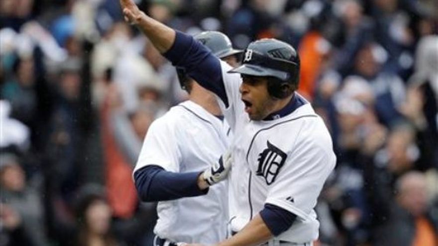 Don Kelly anotó la carrera del empate tras un lanzamiento descontrolado en la octava entrada y después bateó un elevado de sacrificio con las bases llenas en la parte baja de la novena para llevar a los Tigres de Detroit a la victoria 5-4 el domingo sobre los Atléticos de Oakland. Detroit se puso 2-0 arriba en la serie divisional de postemporada de la Liga Americana. El venezolano Miguel Cabrera, ganador de la Triple Corona, pegó dos dobles para los Tigres, bateó un elevado que terminó en un error de dos carreras y finalmente conectó un sencillo en el noveno episodio. Detroit buscará una barrida en el tercer juego, que se disputará el martes en Oakland. Por los Atléticos, el cubano Yoenis Céspedes de 5-2 con una anotada y una impulsada. Por los Tigres, los venezolanos Omar Rafael Infante de 5-2 con dos anotadas; Miguel Cabrera de 5-3 von una anotada; y Avisail García de 2-0. El dominicano Jhonny Peralta de 4-2.