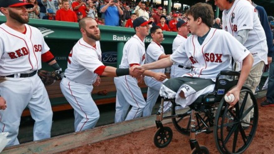 Jeff Bauman, una de las víctimas del atentado al maratón de Boston, y Carlos Arredondo, el individuo que ayudó a salvarle la vida, recibieron el martes un homenaje en el Fenway Park. Bauman, a quien le amputaron ambas piernas en los estallidos de bombas, hizo el primer lanzamiento ceremonial al receptor Jarrod Saltalamacchia previo al juego de los Medias Rojas de Boston ante los Filis de Filadelfia. Arredondo, nacido en Costa Rica, lo llevó al montículo en una silla de ruedas y también hizo un lanzamiento hacia el astro dominicano de los Medias Rojas David Ortiz. Bauman fue captado en una foto de The Associated Press en la que es sacado del sitio del atentado en una silla de ruedas, ayudado por Arredondo. Los Medias Rojas informaron que es la primera vez desde los atentados del 15 de abril que los dos juntos reciben un homenaje. Previo a la ceremonia, el ex pitcher dominicano de los Medias Rojas Pedro Martínez les saludó y firmó autógrafos.