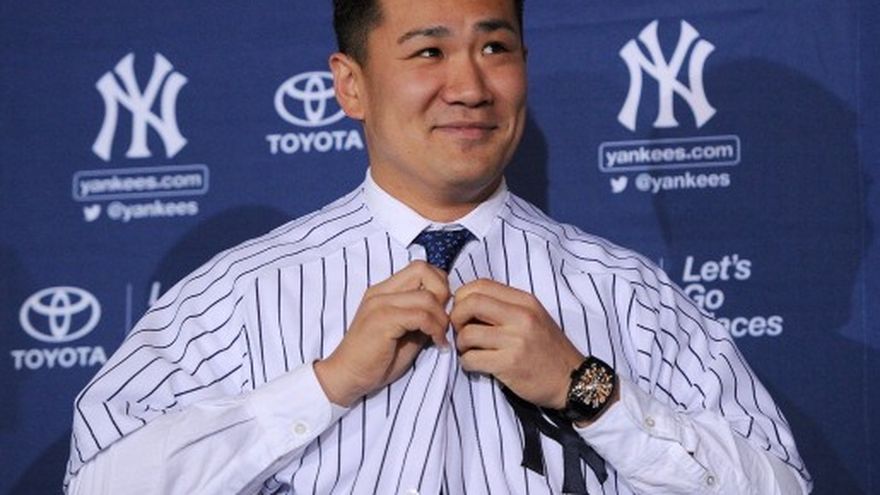 NUEVA YORK (AP) -Después de viajar 8 horas en un jet Boeing 787 de Tokio hasta Nueva York, Masahiro Tanaka fue presentado el martes por los Yanquis. El pitcher de 25 años aceptó el 22 de enero un contrato por siete años y 155 millones de dólares. El martes pasó por Nueva York para una conferencia en el Yankee Stadium, antes de seguir a la sede de pretemporada del equipo en Tampa, Florida. Los campos de entrenamiento comienzan el fin de semana. Tanaka se colocó su camiseta con el número 19 y dijo, en inglés, "estoy muy contento por ser un yanqui". Tanaka fletó el avión de Japan Airlines, en el que caben unas 200 personas, por un costo de unos 200.000 dólares, según reportes, para un viaje de cinco personas y su poodle Haru. Nueva York realizó la conferencia de prensa en un salón del Legends Suite en vez de la sala habitual al lado del camerino. El vocero del equipo, Jason Zillo, indicó que fue la rueda de prensa con mayor concurrencia desde que el japonés Hideki Matsui fue presentado antes de la campaña de 2003. "Esto es grande a lo Yanqui. Esto es grande a lo Steinbrenner", expresó el gerente general Brian Cashman. La temporada pasada, Tanaka tuvo marca de 24-0, con 1.27 de efectividad, con los Golden Eagles de Rakuten en la liga japonesa. El derecho señaló que su primera comida en Nueva York fue un sushi de una tienda de abarrotes. Tanaka dijo que habló con Matsui y sabe que lo único aceptable para los Yanquis es ganar la Serie Mundial. "He escuchado que este lugar puede ser muy hostil", dijo Tanaka, a través de un traductor. "Sólo quería insertarme en este ambiente y ver hasta dónde puedo llegar con mi habilidad".