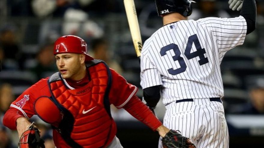 NUEVA YORK (AP) -- Mark Teixeira conectó un jonrón que empató la pizarra y Jacoby Ellsbury anotó la carrera de la ventaja gracias a un passed ball y a un lanzamiento descontrolado, para que los Yanquis de Nueva York se impusieran el domingo 3-2 a los Angelinos de Los Ángeles. Masahiro Tanaka recetó 11 ponches, su mayor cifra de la temporada, incluidos dos a Mike Trout. El japonés se sobrepuso a un lapso de descontrol para librar un apretado duelo con el derecho Garrett Richards. Sin embargo, ambos abridores se fueron sin decisión. Ninguno conoce la derrota en este año. Los Yanquis ganaron dos de los tres duelos de la serie y han obtenido 10 triunfos en 14 encuentros. Nueva York rompió el empate sin pegar hit en el octavo inning, que fue una pesadilla para el receptor de los Angelinos, Chris Iannetta. Con la pizarra igualada 2-2, Michael Kohn (1-1) dio boletos a Ellsbury y al boricua Carlos Beltrán. Nick Maronde relevó y ambos corredores avanzaron con el passed ball de Iannetta. Brian McCann mantuvo vivo su turno con un par de foul tips, y Maronde envió un lanzamiento muy bajo, que pegó en el plato y se le escapó a Iannetta, para que Ellsbury anotara con facilidad. Adam Warren (1-1) ponchó a dos rivales en un episodio y dos tercios. David Robertson resolvió el noveno inning para su cuarto salvamento, el segundo en un par de días. Por los Angelinos, los dominicanos Albert Pujols de 3-0, Erick Aybar de 4-1 con una anotada. Por los Yanquis, el puertorriqueño Carlos Beltrán de 2-0. El dominicano Alfonso Soriano de 4-0.