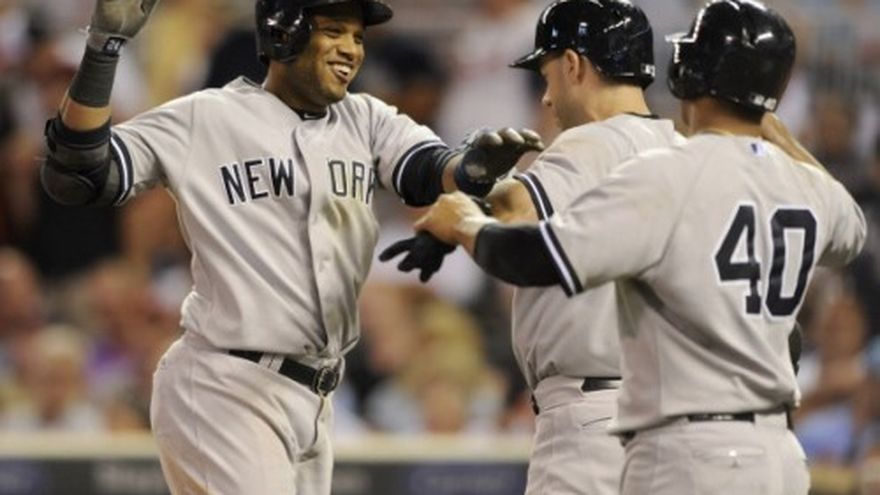 El dominicano Robinson Canó conectó jonrón por tercer encuentro consecutivo, mientras que Phil Hughes permitió una carrera y seis imparables en siete episodios, para que los Yankees de Nueva York doblegaran el martes 7-3 a los Mellizos de Minnesota. Canó, quien conectó el lunes dos cuadrangulares, bateó el martes de 4-2 con tres producidas, mientras que el venezolano Alberto González aportó dos hits y tres impulsadas. Nueva York ha rayado 17 veces en los primeros dos encuentros de la serie para dejar atrás una racha de cinco derrotas seguidas. Hughes (4-7) ponchó a tres rivales y dio dos boletos. Finalmente tuvo apoyo de los bateadores, que estaban hasta hace poco metidos en un bache. El dominicano Samuel Deduno (4-3) toleró tres carreras y cinco indiscutibles en seis innings por Minnesota. Brian Dozier conectó un doblete de dos carreras en el noveno capítulo, pero los Mellizos no pudieron hacer mucho más frente a Hughes, y cayeron por octava ocasión en 11 compromisos. El panameño Mariano Rivera sacó un out en la novena entrada para su vigésimo séptimo salvamento. Por los Yankees, los dominicanos Canó de 4-2 con una anotada y tres empujadas, Zoilo Almonte de 4-1. El venezolano Alberto González de 4-2 con dos anotadas y tres impulsadas. Por los Mellizos, el venezolano Oswaldo Arcia de 3-2 con una anotada. El dominicano Pedro Florimón de 3-0.