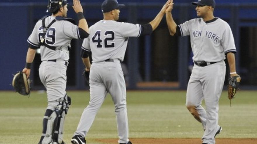 El relevista Aaron Loup cometió un error que costó dos carreras en la 11ra entrada y los Yanquis de Nueva York vencieron el sábado por 5-3 a los Azulejos de Toronto para apuntarse su noven triunfo en los 11 últimos partidos. Shawn Kelley (1-0) sacó dos outs en la décima para llevarse el triunfo, y Mariano Rivera terminó la faena para su quinto rescate. Rivera permitió un hit, no toleró carreras y dio dos ponches en el noveno episodio para asegurar el partido. Vernon Wells y el venezolano Francisco Cervelli abrieron la 11ra con sencillos contra Loup (1-1), e Ichiro Suzuki siguió con un toque al lado de tercera del montículo que persiguieron Loup y el antesalista Brett Lawrie. El pitcher se quedó con la pelota y se dio vuelta para lanzar a tercera, pero Lawrie estaba fuera de posición mientras volvía a la almohadilla y la bola llegó al terreno de foul, lo que permitió que anotaran ambos corredores. Los Azulejos tuvieron la carrera del triunfo en posición de anotar en la décima, pero Kelley retiró a Rajai Davis con un elevado y al dominicano Melky Cabrera con una roleta. Por los Yanquis, los dominicanos Robinson Canó de 4-1 y Eduardo Núñez de 4-0. El venezolano Cervelli de 5-1, con una anotada. Por los Azulejos, los dominicanos Cabrera de 5-2, con dos remolcadas; José Bautista de 4-1; Edwin Encarnación de 4-0; y Emilio Bonifacio de 0-0-, con una anotada. El venezolano Máicer Izturis de 4-1.