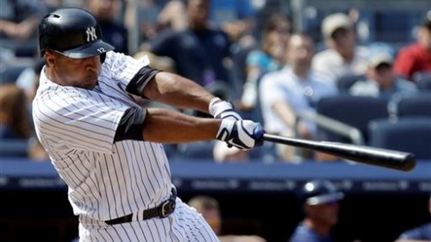 Vernon Wells despertó al fin con el madero, al conectar un doble de tres carreras como emergente, y los Yanquis de Nueva York superaron el sábado 7-5 a los Rays de Tampa Bay. Wells había bateado de 87-9, con lo que fue excluido de la alineación en los últimos dos días. El novato dominicano Zoilo Almonte comenzó en su lugar. Pero en la séptima entrada, cuando los Yanquis perdían por 5-4, Wells ocupó el lugar del noveno bate Chris Stewart, con las bases llenas y dos outs. Su batazo entre el jardín derecho y el central hizo que la pelota rebotara y se fuera encima de la cerca, atrapada por el guante de un espectador. Los umpires determinaron que el espectador interfirió en la jugada. Permitieron que todos los corredores embasados anotaran, al determinar que David Adams hubiera llegado hasta home de no haber sido por la interferencia. Wells llegó a la intermedia y los Yanquis quedaron con ventaja de 7-5. El manager Joe Maddon argumentó que los umpires debieron marcar doble de terreno, lo que hubiera derivado en sólo dos carreras. Los Rays ganaban por 5-3 después de que su promesa principal Wil Myers conectó un grand slam en la sexta entrada. Fue el primer jonrón de Myers en su carrera. El oportuno hit de Wells sacó de problemas a CC Sabathia (8-5), después de que permitió cinco carreras en siete innings. El panameño Mariano Rivera resolvió el noveno sin admitir carreras, para su vigésimo sexto salvamento. El dominicano Joel Peralta (1-4) subió al montículo por los Rays y de inmediato se metió en problemas, para cargar con la derrota. Por los Rays, el cubano Yunel Escobar de 4-0. El venezolano José Lobatón de 3-0. Por los Yanquis, los dominicanos Robinson Canó de 1-1 con tres anotadas, Almonte de 2-1 con una anotada y tres producidas.