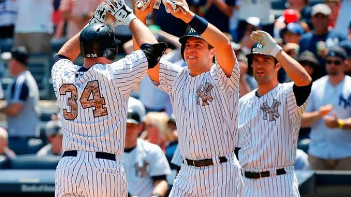 NUEVA YORK (AP) -- Brett Gardner, Brian McCann y Chase Headley conectaron jonrones dentro de una catarata de ocho carreras en el primer inning y los Yanquis de Nueva York vapulearon el lunes 14-1 a los Reales de Kansas City, los líderes de la división Central de la Liga Americana.