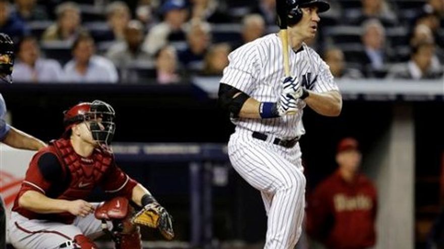 Travis Hafner conectó un cuadrangular como bateador emergente en la octava entrada para darle el triunfo a CC Sabathia, quien logró recuperarse de un arranque titubeante, y ayudó a los Yanquis de Nueva York a vencer el miércoles 4-3 a los Diamondbacks de Arizona. Brett Gardner pegó un sencillo de dos carreras para Nueva York que empató la pizarra en la séptima, luego de que Wade Miley había logrado mantener bajo control a los Yanquis por seis episodios. Sabathia (3-1) admitió un cuadrangular de dos carreras de Paul Goldschmidt en la primera entrada —uno de tres imparables que permitió en el inning inicial_, y sólo otros tres hits y un elevado de sacrificio de A.J. Pollock el resto de su actuación. Hafner bateó en lugar de Ben Francisco con dos outs en la cuenta. Conectó su cuarto vuelacercas de la temporada en el primer lanzamiento que le envió David Hernández (0-1). El panameño Mariano Rivera se encargó del noveno para su cuarto rescate de la campaña. Ha estado impecable en las cuatro oportunidades de salvado que ha tenido hasta ahora. Por los Diamondbacks, los venezolanos Martín Prado de 4-0; Miguel Montero de 3-0; y Gerardo Parra de 4-1. El dominicano Alfredo Marte de 3-0. Por los Yanquis, los dominicanos Robinson Canó de 4-0; y Eduardo Núñez de 2-0, con una carrera anotada.