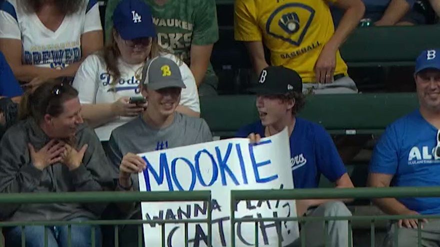 Durante el juego, el jardinero de los Dodgers divisó entre las gradas una cartulina que sostenía un joven fanático y que tenía escrito este mensaje: "Mookie, ¿quieres soltar el brazo?"