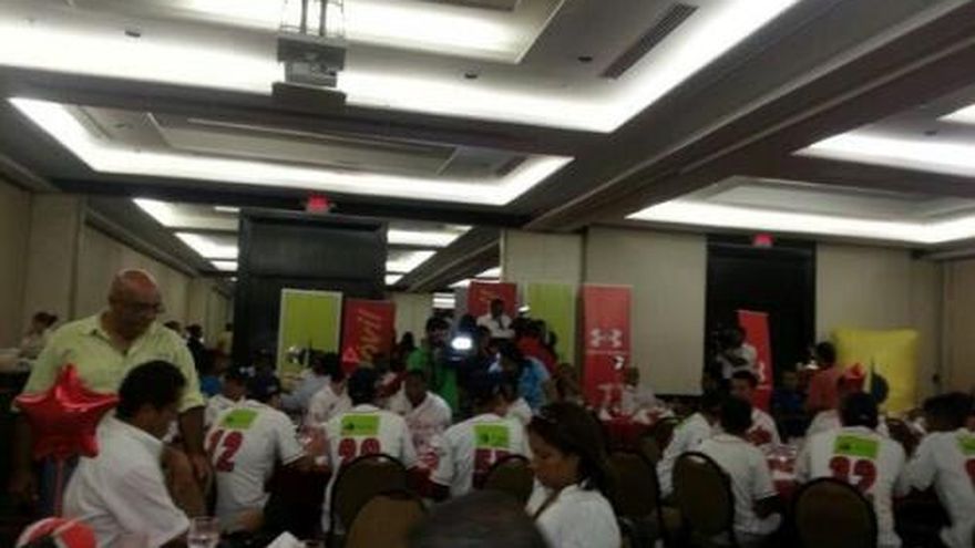 Miembros del equipo de Panamá Metro, que ganó el título de campeón del pasado Campeonato Nacional de Béisbol Juvenil, fueron agasajados en un hotel de la localidad por sus patrocinadores. Durante el almuerzo que se les ofreció, se sorteó un viaje a Estados Unidos para uno de los peloteros. El afortunado fue Jorge Martínez, quien tendrá 30 días para obtener su licencia. En caso de que ésta no le sea otorgada será reemplazado por su compañero Antonio Teidín Frías. Además se le entregó una tablet a cada jugador. Panamá Metro ganó su tercer título nacional de béisbol juvenil consecutiva luego de vencer a Chiriquí en una serie final que ganó en cinco partidos (4-1). FOTO: Hipólito Murillo (twitter)
