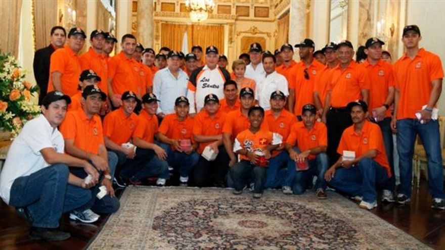 El equipo campeón de Los Santos fueron recibidos este viernes por el presidente de la República, Ricardo Martinelli, quien reconoció el gran esfuerzo que hicieron para coronarse como los campeones del Béisbol Mayor, evento donde se recordó y dedicó al fallecido pelotero Roberto “Flaco Bala” Hernández. “Vamos a seguir apoyando este deporte porque son muy valiosos; estamos seguros que pueden llegar hasta las Grandes Ligas”, señaló el Presidente durante el acto que se realizó en el Salón Amarillo de la Presidencia. Martinelli, igualmente, mencionó que el Estado debe suplir las necesidades de los deportistas porque son atletas que se esfuerzan para dejar el nombre de Panamá en alto y que por ello se continuarán haciendo mejoras en las instalaciones deportivas del país. Este apoyo, dijo el Mandatario, incluye también pensar en la creación de una especie de orden ejecutiva que permita a los jugadores del béisbol, que tengan un empleo, contar con los permisos necesarios en sus trabajos para que también puedan cumplir con el deporte. Durante el acto, el equipo campeón le entregó al Presidente una camiseta en honor al “Flaco Bala”, momento que el Mandatario aprovechó para reiterar que este gran pelotero siempre será la inspiración para que el equipo de Los Santos siga cosechando triunfos y también lo recordó como un valioso panameño que luchó hasta el último momento. Participaron en este recibimiento el vicepresidente y Canciller, Juan Carlos Varela; el director de Pandeportes, Rubén Cárdenas; Carlos Afú y como invitada la ex presidenta Mireya Moscoso, además de otras autoridades deportivas.