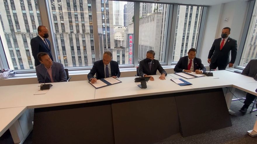 El presidente de la República, Laurentino Cortizo, y el exgrandes ligas Mariano Rivera, fueron los testigos en la ceremonia de firma.