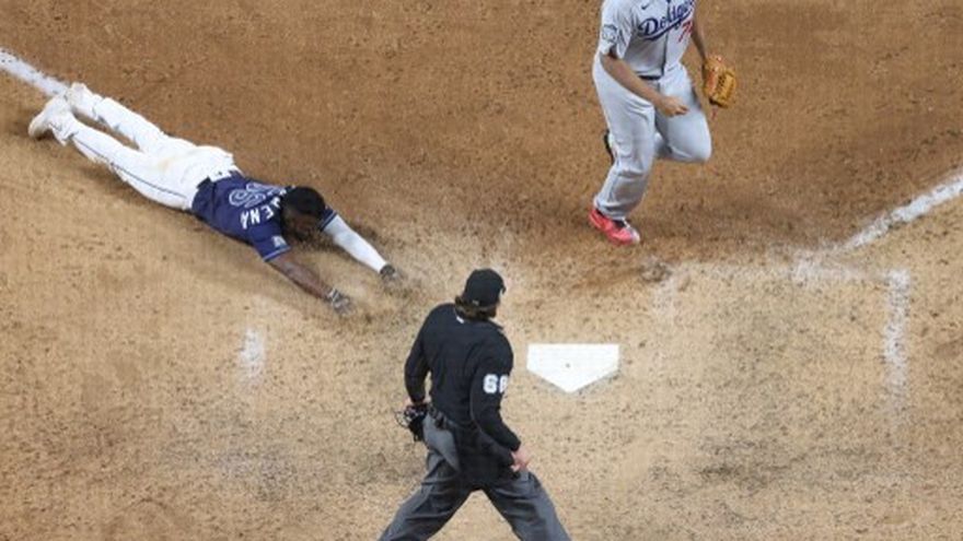 El jardinero Kevin Kiermaier conectó un hit en el noveno, el cubano Randy Arozarena negoció boleto y el también novato Phillips, de emergente, ligó sencillo sobre el que el jardinero central cometió un error y ambos corredores pudieron anotar las dos carreras para dejar tendidos en la grama a los Dodgers.