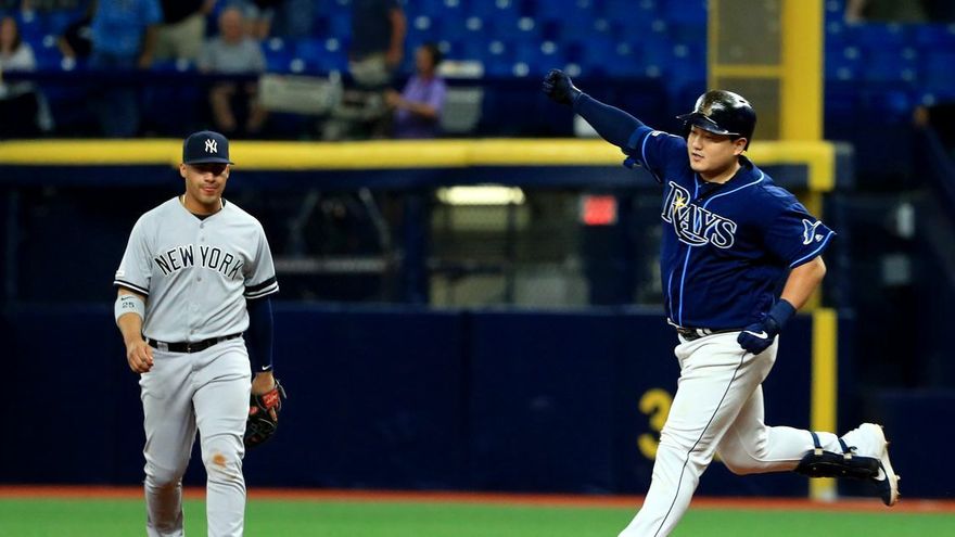 El primera base surcoreano Ji-Man Choi conectó vuelacercas en la décimo segunda entrada y los Rays de Tampa Bay superaron por 2-1 a los Yanquis de Nueva York y se mantienen a la caza de un boleto a la postemporada.