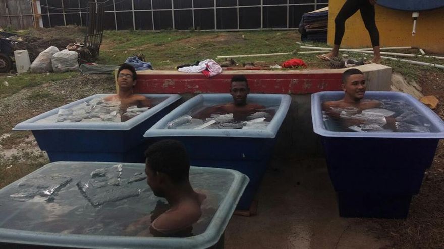 Informó que los peloteros iniciaron este miércoles una hidroterapia que consiste en la utilización de los baños de agua a baja temperatura, que es muy eficaz en la recuperación del esfuerzo físico y para relajar los músculos, estimular la circulación de la sangre con lo cual se consigue un más rápido recobro del atleta.