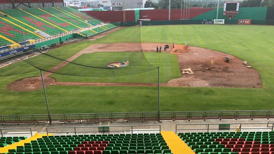 Trabajan en terreno de juego del estadio Kenny Serracín / Pandeportes