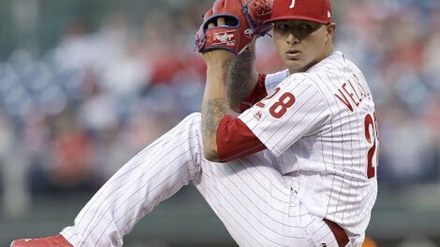 El abridor Vince Velázquez lanzó cinco entradas, el primera base Rhys Hoskins pegó de vuelta entera y los Filis de Filadelfia blanquearon por 6-0 a los Mets de Nueva York.
