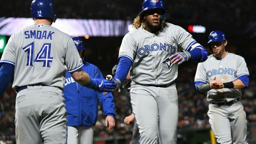 El antesalista canadiense de origen dominicano Vladimir Guerrero Jr, se estrenó en el camino de los jonrones pegando dos y terminó con cuatro carreras remolcadas para los Azulejos de Toronto, que derrotaron por 7-3 a los Gigantes de San Francisco.