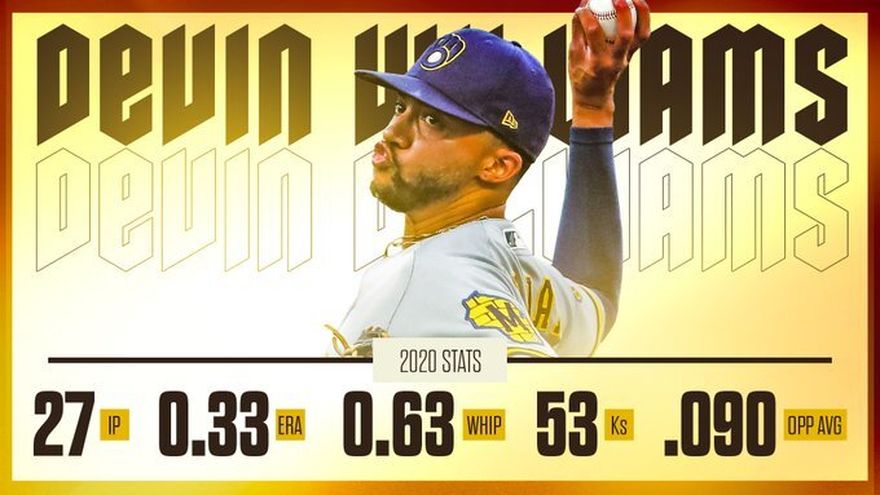 Entre los lanzadores calificados, Williams tuvo la mejor efectividad (0.33) y promedio de bateo en contra (0.89) en toda las Grandes Ligas en el 2020.
