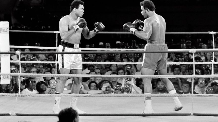 George Foreman llegaba como favorito. Pero fue finalmente Mohamed Ali el que se llevó la victoria por KO en el octavo asalto.