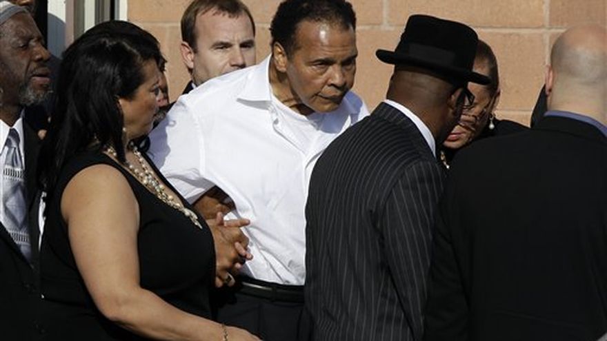 Con un cinturón de campeón y un par de guantes sobre su féretro, Joe Frazier tuvo el lunes una despedida emotiva en Filadelfia. El reverendo Jesse Jackson le pidió a los dolientes que se pusieran de pie, unieran sus manos y por última ocasión le "muestren su amor" al ex campeón de los pesos completos. Muhammad Alí se sumó al momento pese a las complicaciones por el mal de Parkinson que lo aqueja. De traje oscuro y gafas de sol, Alí —tembloroso y con un equilibrio precario— se levantó de su asiento y aplaudió vigorosamente a su eterno rival, "Smokin" Joe", quien le propinó su primera derrota en una trayectoria deslumbrante. Alí fue una de las casi 4.000 personas que colmaron el templo bautista Enon Tabernacle para celebrar la vida de Frazier. El ex campeón de los completos Larry Holmes y el promotor Don King también asistieron al funeral del legendario púgil, que falleció la semana pasada de cáncer de hígado. Devastado por el Parkinson, Alí llegó acompañado de varios parientes y de su esposa Lonnie, quien le acarició la espalda cuando estaba sentado y lo sostuvo de las manos cuando entró y salió del templo. Jackson pronunció un panegírico conmovedor, en el que describió a Frazier como alguien que "llegó de la segregación, la degradación y la vergüenza a la gracia plena". El campeón era apodado "Smokin" (Humeante) porque según sus entrenadores practicaba hasta que salía humo de los guantes. "Digánles que Rocky no fue campeón. Joe Frazier, sí", dijo Jackson sobre otro boxeador famoso de Filadelfia, que aunque sólo existió en el cine tiene una estatua en el Museo de Arte de la ciudad. "Digánles que Rocky es ficticio, Joe fue una realidad. Los puños de Rocky están congelados en piedra. Los puños de Joe son humo", dijo Jackson. "Rocky nunca enfrentó a Alí, a Holmes o a (George) Foreman... Los campeones se hacen en el cuadrilátero, no en las películas. Es merecido tener una estatua de Joe Frazier en el centro de Filadelfia". Mike Tyson, con la voz entrecortada, envió un mensaje de condolencia en video, al igual que el magnate inmobiliario Donald Trump y el actor Mickey Rourke. "Hicimos historia juntos", dijo King, quien promovió la pelea de Alí contra Foreman en que éste fue noqueado en el octavo episodio. "Intentamos mejorar a Estados Unidos". King, que llevaba una bufanda con la bandera estadounidense impresa y flameaba otra insignia nacional más pequeña, estrechó la mano de Alí antes de la ceremonia. Holmes saludó a "El más grande" cuando el funeral terminó con un saludo de 10 campanadas, la tradicional despedida en el boxeo que evoca la cuenta final. Frazier vapuleó a Alí, lo derribó y ganó por decisión en la "Pelea del Siglo" en el Madison Square Garden en 1971. Habría de perder las otras dos peleas en que se enfrentaron.
