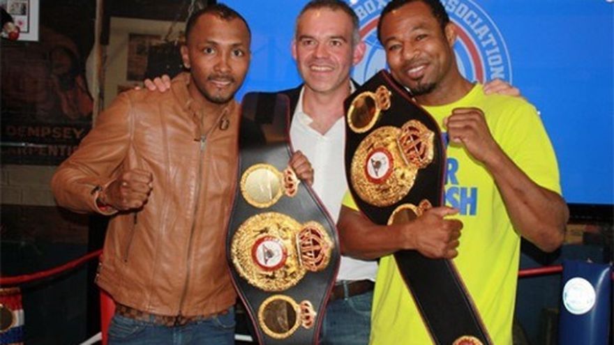 El vicepresidente de la Asociación Mundial de Boxeo (AMB), el venezolano Gilberto Jesús Mendoza, entregó recientemente las fajas negro y oro al súper campeón gallo, el panameño Anselmo "Chemito" Moreno, y el exmonarca universal, Shane Mosley, quienes estuvieron de visita en las oficinas de la AMB, en la ciudad de Panamá. Además, se les entregó, a ambos campeones, un reloj con diseño exclusivo con el logo de la AMB. Tanto Moreno como Mosley agradecieron el gesto. TEXTO: Hilmar Rojas Erazo (AMB) FOTO: AMB