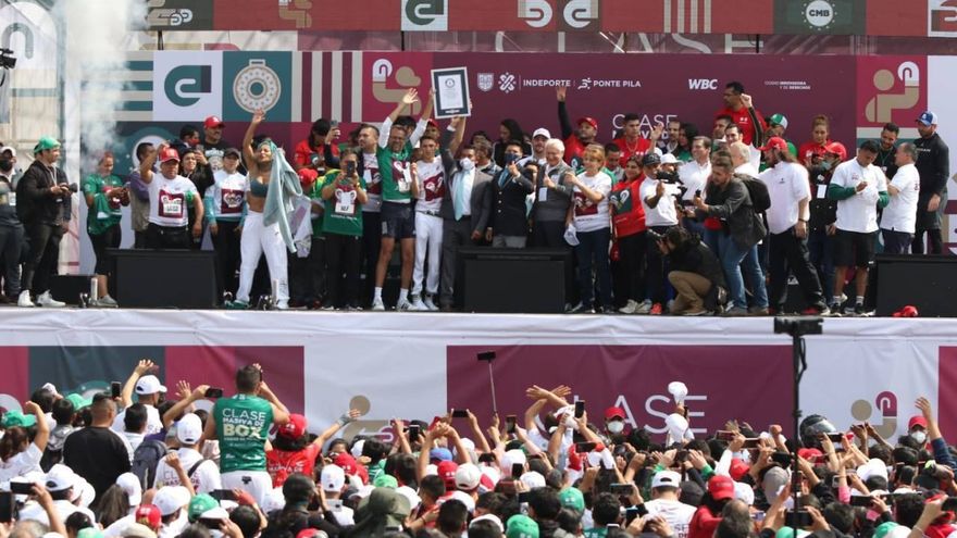 Ciudad de México obtuvo este sábado el récord Guinness a la clase de boxeo más grande del mundo al reunir a 14,299 personas para una lección en el Zócalo, la plaza central de la capital.