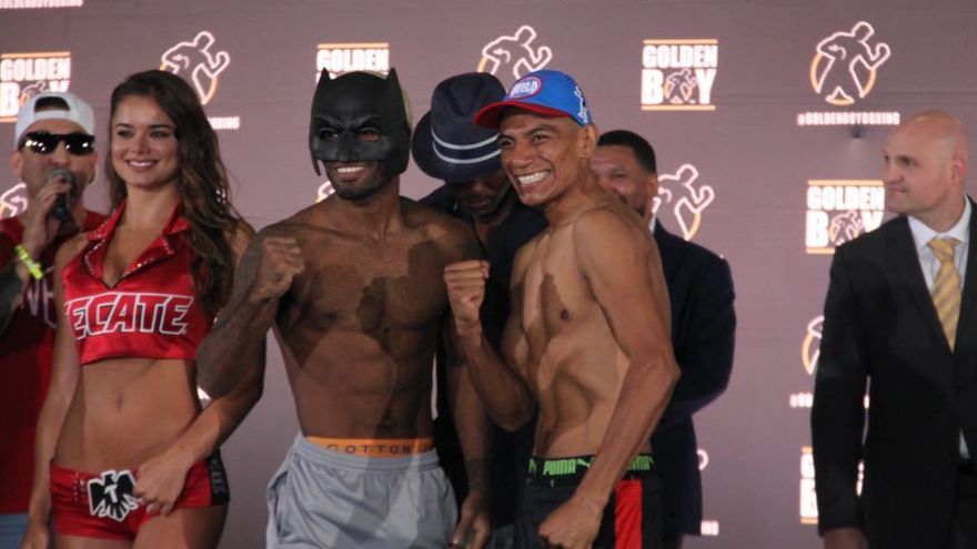 Corrales en el pesaje utilizó una máscara del conocido personaje de película Batman.
