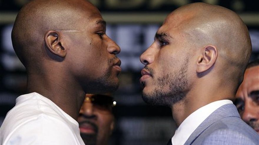 Floyd Mayweather Jr. y Miguel Cotto pasaron el pesaje oficial sin problemas y se declararon listos para su pelea del sábado en el MGM Grand. Mayweather pesó 151 libras para la pelea en la división de las 154. Cotto, campeón mediano Jr., dio el peso límite y se mostró en ran condición física. Mayweather, reconocido como el mejor boxeador del mundo libra por libra, es favorito contra Cotto en el combate por el título de la Asociación Mundial de Boxeo. Considerado un peleador invencible, Mayweather debe imponer su habilidad, técnica, pegada y recursos boxísticos ante Cotto, un rival de experiencia y resistencia que podría complicar con su fortaleza la pelea al favorito. Mayweather Jr. ha conquistado en su brillante carrera los campeonatos mundiales de peso superpluma, ligero, welter Jr., welter y mediano Jr., todos avalados por el Consejo Mundial de Boxeo, lo que ejemplifica su talento. Entre sus víctimas se encuentran los mexicanos José Luis Castillo, Jesús Matador Chávez, Juan Manuel Márquez, los desaparecidos Genaro Chicanito Hernández y Diego Chico Corrales, Oscar de la Hoya, Ricky Hatton, Zab Judah, Shane Mosley y Víctor Ortiz, entre otros. Cotto ha reinado en las escalas welter Jr., welter y mediano Jr. y se ha encerrado en el ring con rivales de la talla de Antonio Margarito, DeMarcus Corley, Paul Malignanni, Carlos Quintana, Zab Judah, Manny Pacquiao y Ricardo Mayorga. El imbatido Mayweather acumula 42 triunfos, con 26 nocauts, mientras Miguel Cotto tiene récord de 37 victorias, con 30 antes del límite y dos reveses (ante Margarito y Pacquiao). CANELO MEJOR EN LA BALANZA El mexicano Saúl Canelo Álvarez ganó el primer round al estadounidense Shane Mosley, quien tuvo sobrepeso de media libra en la ceremonia de pesaje. Mosley subió a la báscula y registró 154.5 libras, seguido por Álvarez que dio el límite mediano Jr. que indica 154 lbs. Rato después, Mosley regresó y dio el peso límite, por lo que la pela seguirá como estaba planeada, y será sancionada por el Consejo Mundial de Boxeo (CMB). Los oficiales de ring designados para esta contienda son Jay Nady, réferi, y tres jueces con más de una década de experiencia: Cinthya J. Ross (Nevada), Glenn Trowbridge (Nevada) y Jesse Reyes (Texas). La contienda Álvarez-Mosley será la coestelar de la velada "Reyes del Ring" que estelarizarán Mayweather Jr ante Cotto.