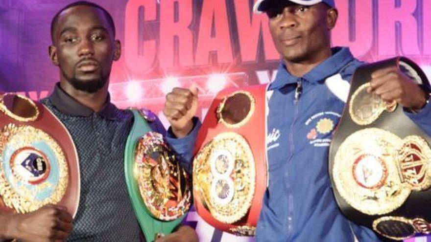 El estadounidense Crawford (31-0, 22 KOs), expondrá los títulos junior wélter de la Organización Mundial de Boxeo (OMB), Consejo Mundial de Boxeo (CMB) y The Ring Magazine, mientras que el namibio Indongo (22-0, 12 KOs), pondrá en juego los títulos de la Federación Internacional de Boxeo (FIB) y Asociación Mundial de Boxeo (AMB).