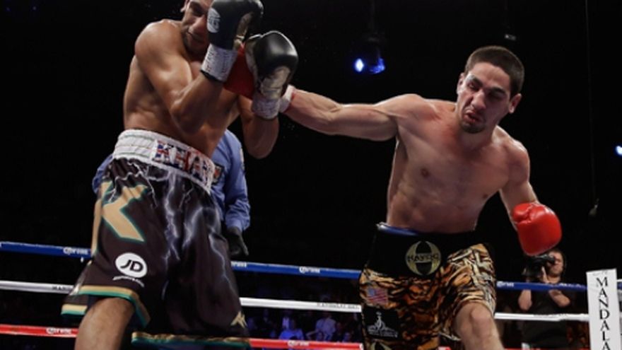 El estadounidense Danny García venció al británico Amir Khan, a los 2:28 minutos del cuarto asalto para ganar la pelea unificatoria de los títulos del peso junior welter de la Asociación y el Consejo Mundia del Boxeo, que se realizó en el Mandalay Bay Resort & Casino de Las Vegas. Khan ganaba la pelea cuando, en el tercer round, García conectó una izquierda gen el cuello de Khan, que puso el británico hacia abajo y lo hirió gravemente. Khan parecía sobrevivir solo porque la caída se produjo muy tarde en el asalto. García (24-0, 15 nocauts) salió en el cuarto para terminar el trabajo, el aterrizaje de un puñetazo tras otro y derribar a Khan (26-3, 18 KOs) dos veces más. Sin embargo, Khan hizo derroche de coraje al combatir cuerpo a cuerpo y crear sus oportunidades de atacar. Después de la caída final, el árbitro Kenny Bayless miró a los ojos de Khan y decidió que había recibido suficiente castigo y detuvo la pelea. García, quien era el campeón del CMB, ahora también es el monarca de la división de las 140 libras en la AMB.