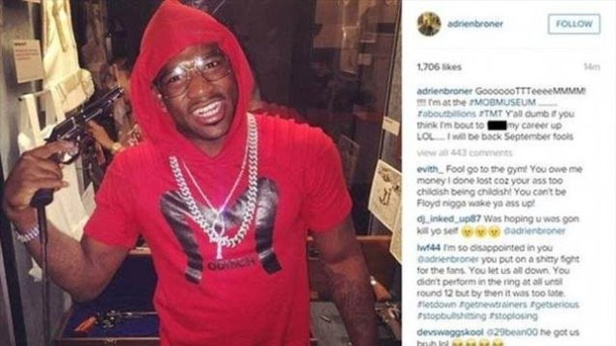 El boxeador Adrien Broner se ha visto obligado a retirar las imágenes en las que posaba con un arma de fuego tras la avalancha de comentarios negativos de sus fans, que consideran los hechos como una broma de mal gusto.
