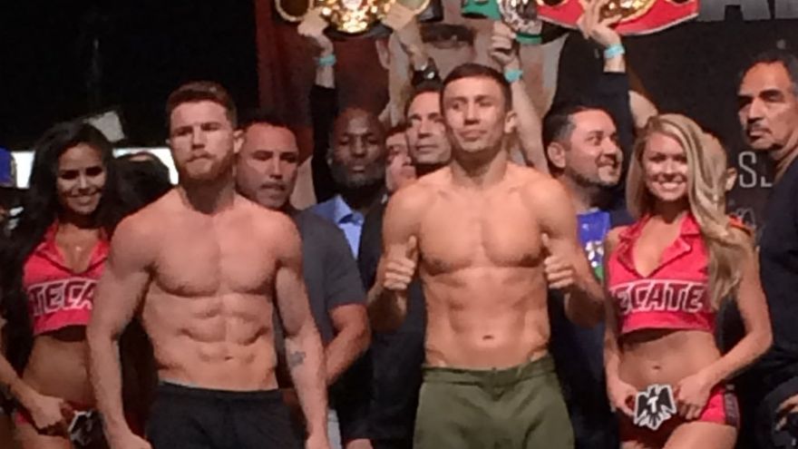 Álvarez (49-1-1, 34 nocauts) y Golovkin (37-0-0, 33 nocauts) pesaron 160 libras cada uno. El primero que subió a la báscula fue el oriundo de Kazajistán.
