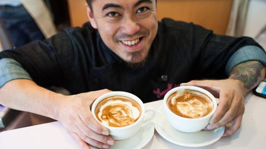 El artista Zach Yonzon sólo usa un palillo para dibujar sobre el café y darle ese toque especial a cada pedido que hace la clientela.