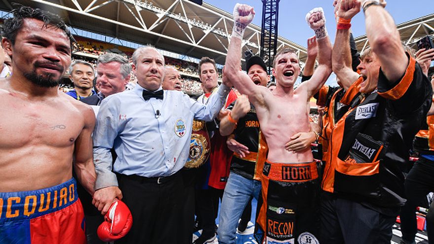 La puntuación de los tres jueces (117-111 y 115-113 dos veces) fue favorable al relativamente poco experimentado Horn, un exprofesor de Educación Física de 29 años con un palmarés de 17 victorias y un nulo. Para Pacquiao, de 38 años, se trata de la séptima derrota en 67 peleas.