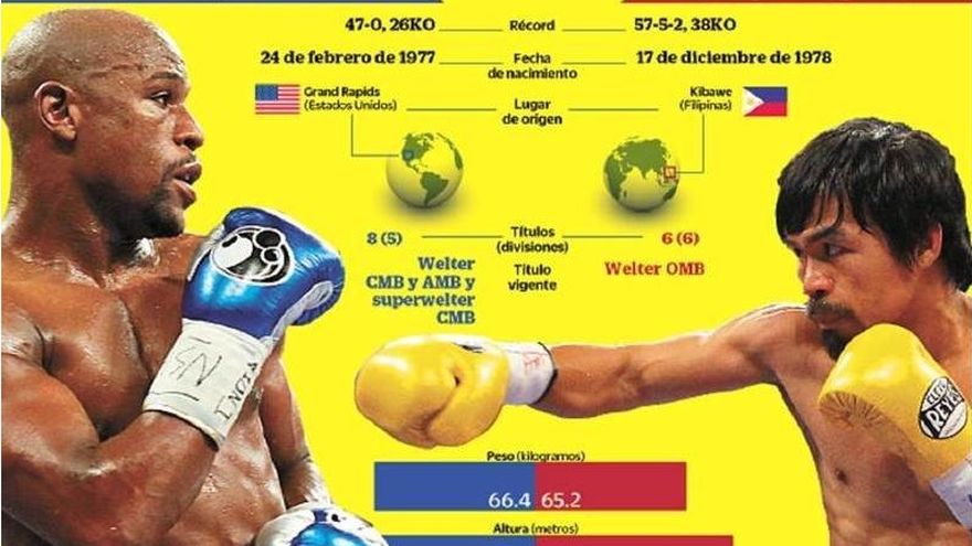 A unos minutos de que se diera el anuncio de la pelea más esperada de los últimos seis años entre el estadounidense Floyd Mayweather Jr. y el filipino Manny Pacquiao, diversas reacciones se han dado de todos los involucrados, en especial las respectivas televisoras de los peleadores, HBO (canal de Pacquiao) y Showtime (Mayweather), que transmitirán el combate en sus respectivas plataformas de Pago Por Evento en Estados Unidos. “Hemos sostenidos pláticas acerca del equipo que se encargará de realizar la transmisión del combate, pero todavía no lo hemos definido aún. Será un equipo de estrellas”, adelantó Stephen Espinoza, vicepresidente del canal Showtime. Este canal que pertenece al consorcio de CBS adelanta que aún no hay una postura oficial sobre si se tendrán los programas de seguimiento (All Acces y 24/7) que tradicionalmente se realizan para esta clase de magnas peleas. Sólo que se realizará un programa especial previo al combate. Así también Showtime dio a conocer que el combate ser realizará en el peso de 147 libras y se pondrá en juego los títulos welter de Floyd, el del Consejo (CMB) y el de la Asociación Mundial de Boxeo (AMB). En tanto que Manny, expondrá su cetro welter de la Organización Mundial de Boxeo (OMB). A estos títulos mundiales, se podrían sumar los cinturones especiales que el CMB y la OMB ofrecen en esta clase de peleas. El fajín de oro del Consejo y el Campeón de la década de la Organización. Se anunció que en las próximas horas habrá una conferencia de prensa para dar más detalles sobre este histórico combate. A falta de una confirmación, diversas fuentes adelantan que la bolsa en juego podría llegara los 300 millones de dólares, con un 60 por ciento para Floyd y un 40 para Pacquiao. Así también, con el anuncio del combate, se espera que Golden Boy Promotions anuncie el cambio de fecha para el combate que sostendrá el tapatío Saúl Canelo Álvarez y James Kirkland, en el Alamodome de San Antonio, una vez que está programado para el mismo 2 de mayo. El promotor Oscar de la Hoya ya había adelantado de este cambio en caso de que se concretara Mayweather-Pacquiao.