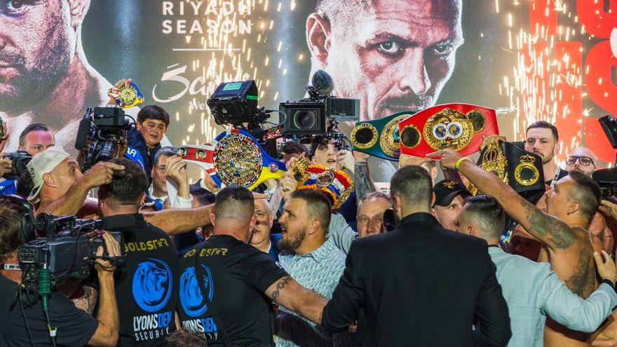 El choque de titanes empezó a calentarse el lunes en Riad, cuando John, padre de Fury, asestó un cabezazo a un miembro del entorno de Usyk.