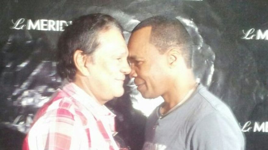 Sugar Ray Leonard y Roberto "Mano de Piedra" Durán se volvieron a encontrar, pero no para subirse a un tinglado y revivir su vieja rivalidad, sino para dirigirse a los medios de comunicación y explicar un proyecto en el que trabajan juntos. Dos de los grandes exponentes del boxeo de todos los tiempos se reunieron por primera vez en Panamá para la grabación de un documental en el que ambos expondrán las experiencias que vivieron en las tres peleas que combatieron uno contra el otro. "Durán manejó el carro para venir a este hotel y maneja tan mal que casi me muero de miedo", comentó el expúgil estadounidense como anécdota previa a la conferencia de prensa. El exastro del boxeo oriundo de Estados Unidos llegó ayer a Panamá y ya ha realizado las grabaciones del documental en la Arena Roberto Durán, con la participación del excampeón panameño. Mañana saldrá de tierras panameñas. Leonard y Durán se enfrentaron tres veces, el 20 de julio de 1980, el 25 de noviembre de 1980 y el 7 de diciembre de 1989. Durán ganó el primer enfrentamiento por decisión unánime en 15 asaltos, el segundo lo ganó Leonard por nocaut técnico en ocho asaltos (ese combate fue conocido como la pelea del "No más", en alusión a la frase que el panameño dijo tras no poder continuar con la pelea). El estadounidense se anotó el triunfo en el tercer combate por decisión unánime en 12 asaltos. Ambos boxeadores, que hoy son buenos amigos, posaron en una foto mirándose frente a frente tal y como lo hicieron las veces que combatieron en tres peleas que consolidaron sus legendarias carreras. FOTO: Marcelino Castillo (Twitter)